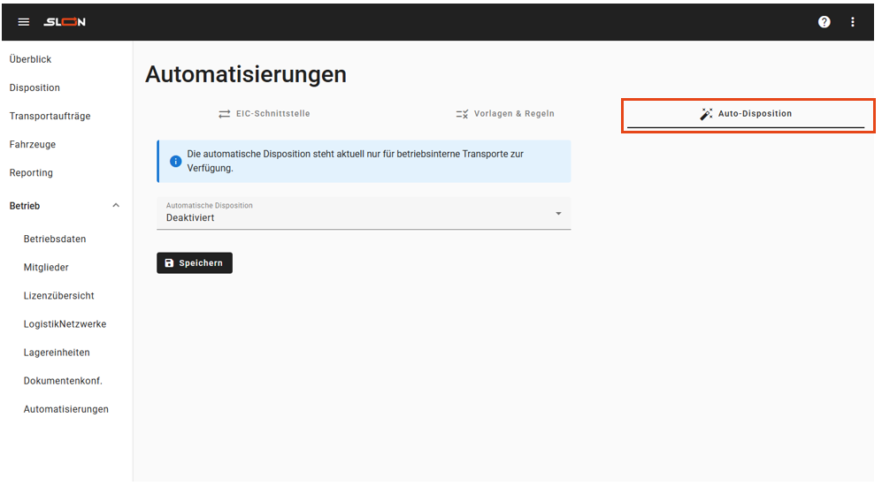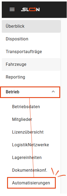 Die automatische Disposition kann im Menüpunkt Automatisierungen im Hauptmenü Betrieb verwaltet werden: