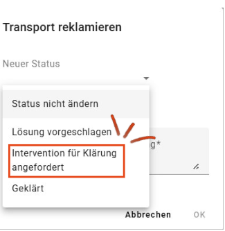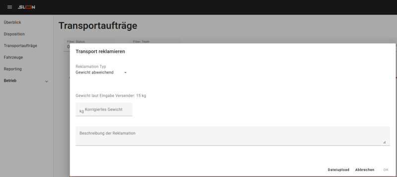 - Die Reklamation wird zudem direkt beim betroffenen Transport angezeigt.