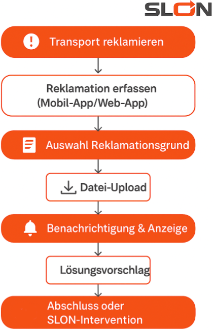 Es gibt zwei Möglichkeiten, eine Reklamation in SLON einzureichen1. Über die SLON Mobil-App (für Transporteure)