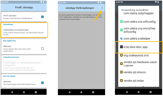 Schließlich noch das neu erstellte Profil mit der SLON App verbinden: